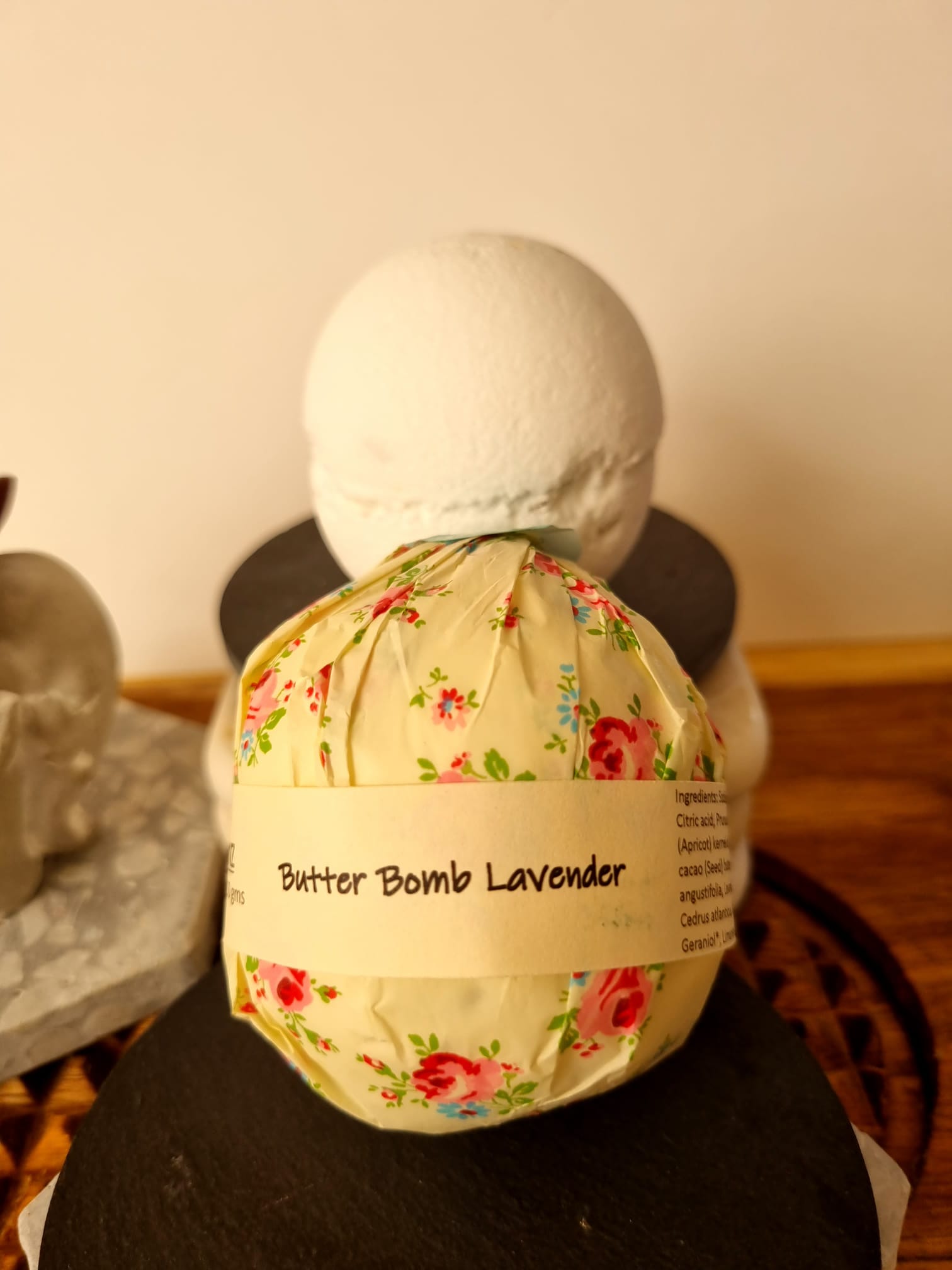 Indulge in ultimate relaxation with the Butter Bomb Lavender, a luxurious bath bomb infused with nourishing cocoa butters and calming lavender. As it dissolves, it releases rich moisturizers to hydrate your skin while the soothing lavender scent promotes deep relaxation and tranquility. Perfect for unwinding and leaving your skin feeling soft, smooth, and delicately fragranced. Ideal for a pampering self-care ritual.